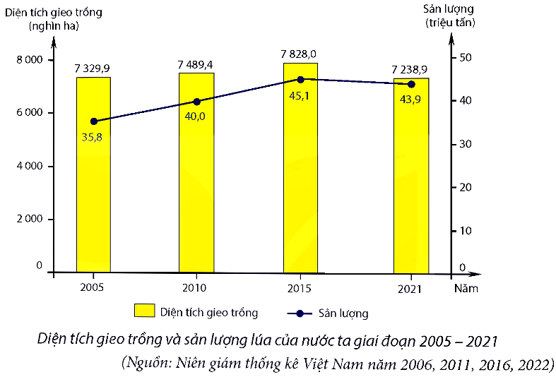 Cho biểu đồ sau:Dựa vào bảng số liệu trên, cho biết năng suất lúa của nước ta cao nhất vào