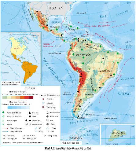 SGK Địa lí 11, Mỹ La-tinh (Phân tích bản đồ tự nhiên).