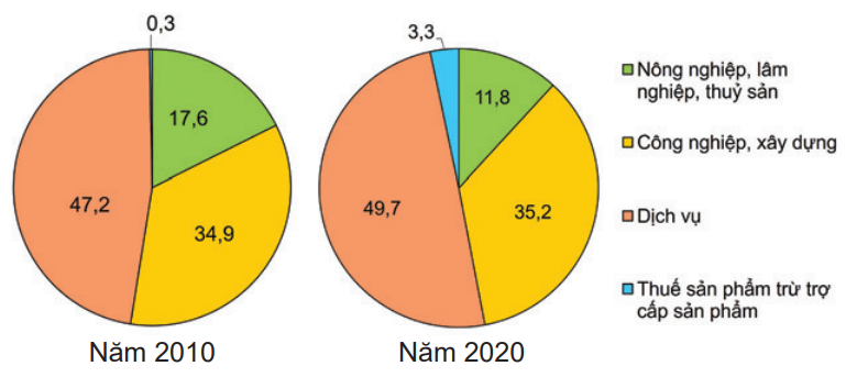 Cho biểu đồ về GDP của khu vực Đông Nam Á năm 2010 và 2020 (Đơn vị: %)