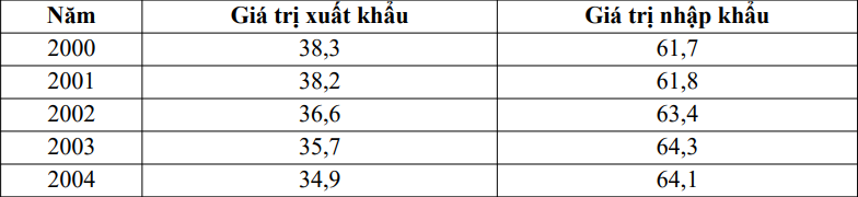 Nhận xét về cơ cấu giá trị xuất nhập khẩu của Hoa Kì giai đoạn 2000 – 2004.