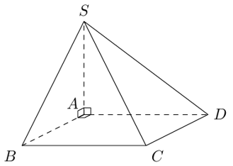 Cho hình chóp S.ABCD có đáy ABCD là hình chữ nhật và cạnh SA vuông góc với mặt phẳng đáy. Góc