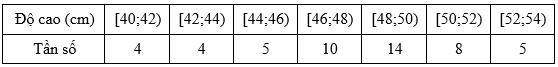 Một bệnh viện thống kê chiều cao của 50 trẻ sơ sinh 12 ngày tuổi một cách ngẫu nhiên.Kết