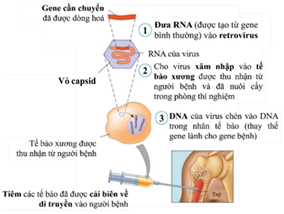 Các bước thực hiện liệu pháp gene cho bệnh nhân ung thư máu được mô tả theo sơ đồ hình bên. Từ các thông tin đã cho, lựa chọn những phát biểu đúng.
