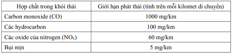 (3) Nếu xe phát thải lượng hydrocarbon vượt quá 100 mg/km thì không đạt tiêu chuẩn Euro 6.