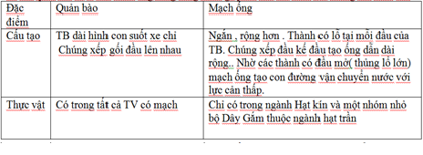 d. Tế bào quản bào và tế bào mạch ống trong dòng mạch gỗ phân biệt với nhau bởi những đặc điểm nào?