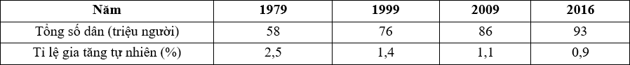 b) Nhận xét sự thay đổi quy mô dân số tỉ lệ gia tăng dân số tự nhiên ở Việt Nam, giai đoạn 1979 – 2016.