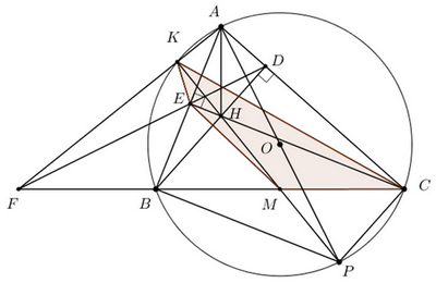 c) Gọi M là trung điểm của đoạn thẳng BC. Đường thẳng AF cắt (O) tại điểm thứ hai