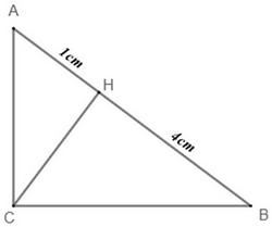 Tam giác ABC vuông tại C, có đường cao CH chia cạnh huyền thành hai đoạn có độ dài bằng 1cm và 4cm. Tính diện tích tam giác ABC.