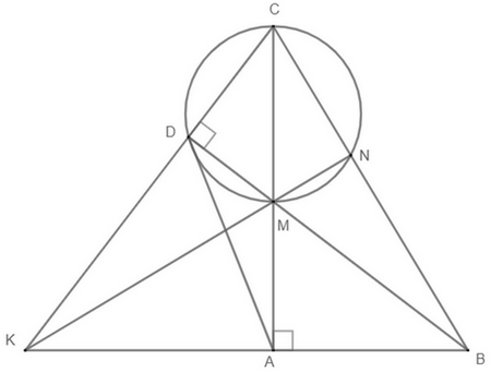 Cho tam giác ABC vuông tại A, M là một điểm thuộc cạnh AC (M khác A, C), đường tròn đường kính CM cắt BC tại N và cắt BM kéo dài tại D.