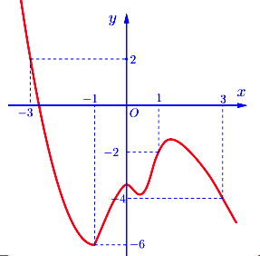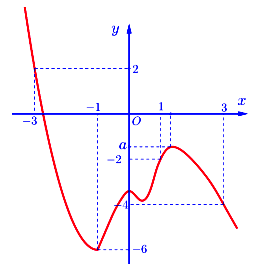 Cho hàm số \(y = f(x)\) liên tục trên \(\mathbb{R}\) có đồ thị như hình vẽ.Có bao nhiêu giá trị
