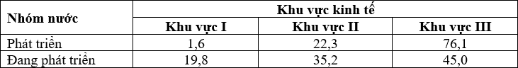 Cho bảng số liệu sau: Cơ cấu GDP phân theo khu vực kinh tế của các nhóm nước năm 2014 (Đơn