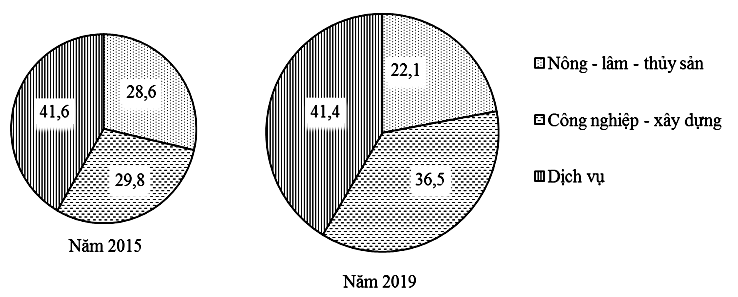 Cho biểu đồ: CƠ CẤU GDP PHÂN THEO NGÀNH KINH TẾ CỦA CAM-PU-CHIA NĂM 2015 VÀ 2019 (%) (Số liệu theo