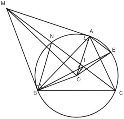 Cho tam giác ABC có ba góc nhọn (AB > AC) nội tiếp đường tròn tâm O. Hai tiếp tuyến tại A và B của đường tròn (O) cắt nhau tại điểm M.