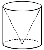 Bác Ba có một khối gỗ dạng hình trụ với bán kính đường tròn dây \(r = 3\;{\rm{cm}}\) và chiều cao \(h = 8\;{\rm{cm}}\). Bác Ba khoan một phần của khối gỗ đó có dạng hình nón với bán kính đáy và chiều cao bằng bán kính đáy và chiều cao của khối gỗ (minh họa như hình bên dưới).