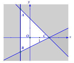 $\left\{\begin{array}{l}x+1 \geq 0 \\ x+y \leq 2 \\ x-2 y \leq 2\end{array}\right.$