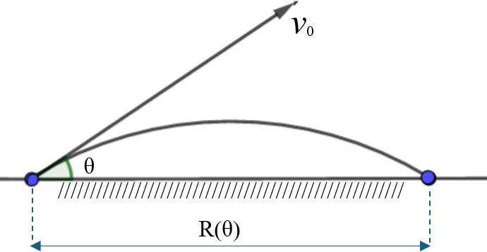 Một viên đạn pháo được bắn từ mặt đất với vận tốc \({v_0}\) hợp với phương ngang một góc \(\theta \) (đơn vị: độ, \({0^\circ } < \theta < {45^\circ }\)) và tầm bắn được mô hình hóa bởi hàm số \(R(\theta ) = \dfrac{{v_0^2.\sin (2\theta )}}{g}(m)\), trong đó g là gia tốc trọng trường lấy xấp xỉ bằng 9,8\(m/{s^2}\). Với\({v_0} = 490m/s\), tính \(\theta \)để viên đạn trúng mục tiêu trên mặt đất phẳng cách đó \(18800m\) (nhập đáp án vào ô trống , kết quả làm tròn đến hàng đơn vị)