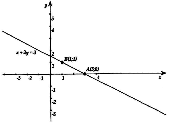 Bước 2. Biểu diễn hai điểm có tọa độ là hai nghiệm vừa tìm được trên mặt phẳng tọa độ, rồi vẽ đường thẳng đi qua hai điểm đó.