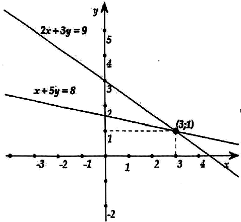 c) Vẽ đường thẳng \(2x + 3y = 9\) và \(x + 5y = 8\) trên cùng một mặt phẳng tọa độ để minh họa kết luận ở câu b).