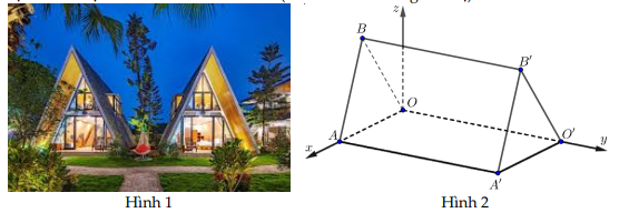 Những căn nhà gỗ trong Hình 1 được phác thảo dưới dạng một hình lăng trụ đứng tam giác $OAB \cdot O^{\prime} A^{\prime} B^{\prime}$. Với hệ trục toạ độ $Oxyz$ thể hiện như Hình 2 (đơn vị đo lấy theo centimét), hai điểm $A^{\prime}$ và $B^{\prime}$ có tọa độ lần lượt là $(240 ; 450 ; 0)$ và $(120 ; 450 ; 300)$. Mỗi căn nhà gỗ có chiều dài là $a$$\mathrm{~cm}$, chiều rộng là $b$$\mathrm{~cm}$, mỗi cạnh bên của mặt tiền có độ dài là $c \mathrm{~cm}$. Tính $a+b+c$ (Làm tròn đến hàng đơn vị).