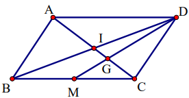 Cho hình bình hành $A B C D$ tâm $I; G$ là trọng tâm tam giác $BCD$.