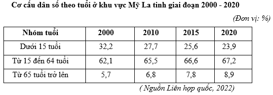 | c) Dạng biểu đồ thích hợp nhất thể hiện sự chuyển dịch cơ cấu dân số theo nhóm tuổi ở khu vực Mỹ La tinh giai đoạn 2000 – 2020 là biểu đồ miền. | ||
