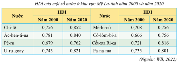 | a) Chỉ số HDI của khu vực Mỹ La tinh thuộc mức trung bình trên thế giới. |