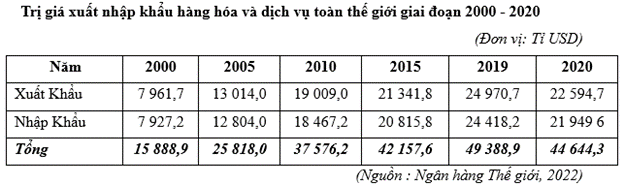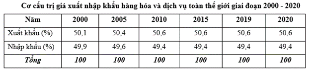Cho bảng số liệu: Dựa vào bảng số liệu trên, cho biết tỉ trọng nhập khẩu trong