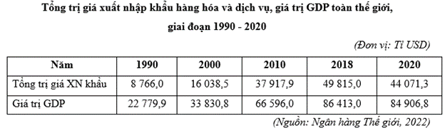 Dựa vào bảng số liệu trên, cho biết tốc độ tăng trưởng của giá trị GDP của toàn thế giới năm 2020 là bao nhiêu %? (làm tròn đến hàng đơn vị của %)