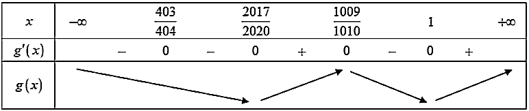Cho hàm số \(y = f(x)\) có đồ thị hàm đạo hàm \(y = f'(x)\) như hình vẽ. Hàm số \(g(x) = f(2019 - 2020x)\) nghịch biến trên khoảng \(\left( {\dfrac{a}{b};1} \right)\) (với \(\dfrac{a}{b}\) là phân số tối giản). Khi đó \(a - b\) bằng: