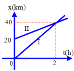 | a) Phương trình chuyển động của xe I là: \({x_1} = 20t\,\,\left( {km} \right)\) | ||
