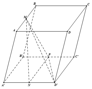 Cho hình hộp \(ABCD.A'B'C'D'\). Gọi \(M\), \(N\), \(P\) lần lượt là trung điểm của \(AB\), \(A'D'\),