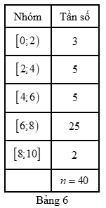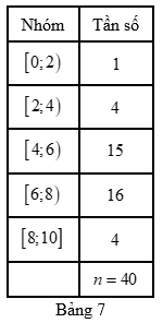 Kết quả kiểm tra môn Tiếng Anh (cùng đề) của học sinh hai lớp \(12A\) và \(12B\) được cho lần lượt bời mẫu số liệu ghép nhóm ở Bảng 6, Bảng 7.