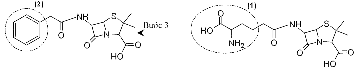 Penicillin được tạo thành ở bước 3 theo sơ đồ dưới đây