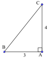 4) Cho tam giác ABC vuông tại \(A\) có \(AB = 3,AC = 4\). Quay tam giác ABC một vòng quanh cạnh AC. Tính thế tích cùa hình được tạo thành.