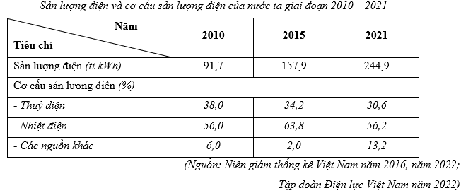| b) Cơ cấu sản lượng điện tương đối đồng đều giữa các nguồn năng lượng. | ||
