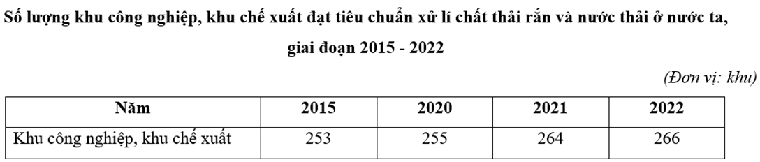Cho bảng số liệu sau: So với năm 2015, tốc độ tăng trưởng lượng khu công nghiệp,