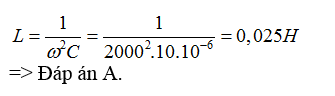Dòng điện trong mạch LC có biểu thức i = 0,01cos(2000t)(mA). Tụ điện trong mạch có điện dung C = 10