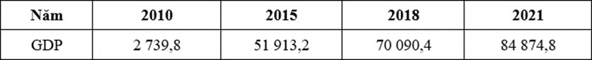 Cho bảng số liệu: GDP THEO GIÁ HIỆN HÀNH CỦA NƯỚC TA GIAI ĐOẠN 2010 - 2021 (Nguồn: