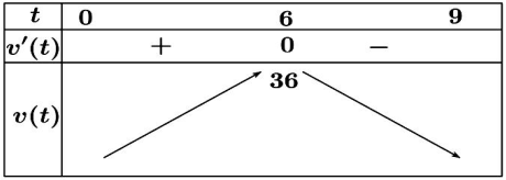 Một vật chuyển động theo quy luật \(s(t)=-\dfrac{1}{3} t^3+6 t^2\) với \(t\) (giây) là khoảng thời gian tính từ khi vật bắt đầu chuyển động và \(s\) (mét) là quãng đường vật di chuyển được trong khoảng thời gian đó. Hỏi trong khoảng thời gian 9 giây kể từ khi bắt đầu chuyển động, vận tốc lớn nhất của vật đạt được bằng bao nhiêu?