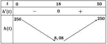 Một tàu đổ bộ tiếp cận Mặt Trăng theo cách tiếp cận thẳng đứng và đốt cháy các tên lửa hãm ở độ cao 250 km so với bể mặt của Mặt Trăng. Trong khoảng 50 giây đầu tiên kể từ khi đốt cháy các tên lửa hãm, độ cao \(h\) của con tảu so với bể mặt của Mặt Trăng được tính (gần đúng) bởi hảm \(h(t)=-0,01 t^3+1,1 t^2-30 t+250\) trong đó \(t\) lả thời gian tính bằng giây và \(h\) là đô cao tính bằng kilomet.