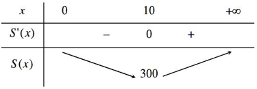 Một hộp không nấp được làm từ một mảnh các tông theo hình. Hộp có đáy là một hình vuông cạnh \(x(\mathrm{~cm})\), chiều cao là \(h(\mathrm{~cm})\) và có thể tích là \(500 \mathrm{~cm}^3\). Hãy biểu diễn \(h\) theo \(x\). Hỏi giá trị của \(x\) sao cho diện tích mảnh các tông \(S(x)\) nhỏ nhất.
