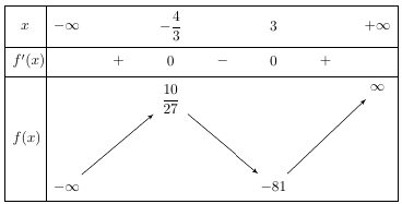 | b) b) Hàm số đạt cực đại tại \(x = - \dfrac{4}{3}\), giá trị cực đại là \(\dfrac{{10}}{{27}}\) | ||