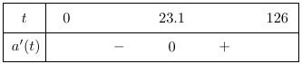 Lập xét dấu của hàm số \(a\left( t \right)\) trên \(\left[ {0;126} \right]\)