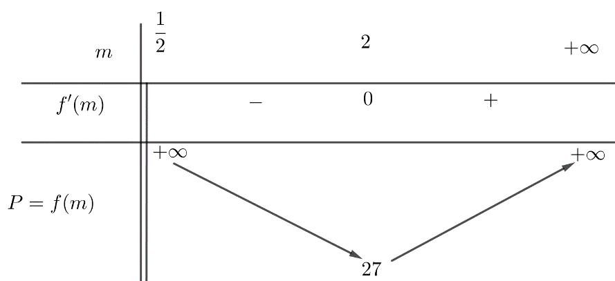 Cho số thực \(m = {\log _a}\sqrt {ab} \) với \(a,b > 1\) và \(P = {\left( {{{\log }_a}b} \right)^2} + 54{\log _b}a\). Tìm giá trị của \(m\) để biểu thức \(P\) đạt giá trị nhỏ nhất.