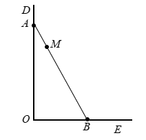 Người ta muốn xây một đoạn đường \(AB\) (như hình vẽ) và đoạn đường này phải đi qua điểm \(M\)Biết rằng vị trí điểm \(M\) cách \(OD\) \(125m\) và cách \(OE\) \(1km\). Giả sử chi phí để làm \(100m\) đường là \(150\) triệu đồng. Chọn vị trí của \(A\) và \(B\) để hoàn thành con đường với chi phí thấp nhất. Hỏi chi phí thấp nhất để hoàn thành được con đường là bao nhiêu? (Làm tròn kết quả đến số thập phân thứ nhất)