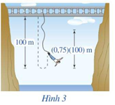 Một người nhảy bungee (một trò chơi mạo hiểm mà người chơi nhảy từ một nơi có địa thế cao xuống với dây đai an toàn buộc xung quanh người) từ một cây cầu và căng một sợi dây dài \(100{\rm{\;m}}\). Sau mỗi lần rơi xuống, nhờ sự đàn hồi của dây, người nhảy được kéo lên một quãng đường có độ dài bằng \(75\% \) so với lần rơi trước đó và lại bị rơi xuống đúng bằng quãng đường vừa được kéo lên (Hình 3). Tính tổng quãng đường người đó đi được sau 10 lần kéo lên và lại rơi xuống (kết quả làm tròn đến hàng phần mười).