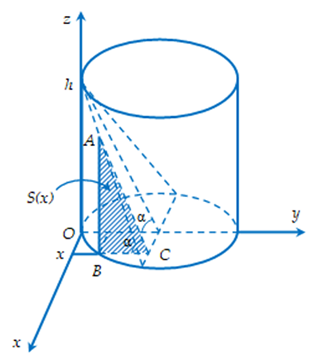 Có một cốc thủy tinh hình trụ, bán kính trong lòng đáy cốc là 6 cm, chiều cao trong lòng cốc là 10 cm đang đựng một lượng nước. Tính thể tích lượng nước trong cốc, biết khi nghiêng cốc nước vừa lúc khi nước chạm miệng cốc thì ở đáy mực nước trùng với đường kính đáy (đơn vị \(c{m^3}\))