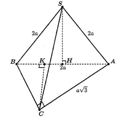 Cho hình chóp \(S.ABC\) có mặt bên \(\left( {SAB} \right)\) vuông góc với mặt đáy và tam giác \(SAB\) đều cạnh \(2a\). Biết tam giác \(ABC\) vuông tại \(C\), cạnh \(AC = a\sqrt 3 \). Gọi H là trung điểm của AB. Khi đó