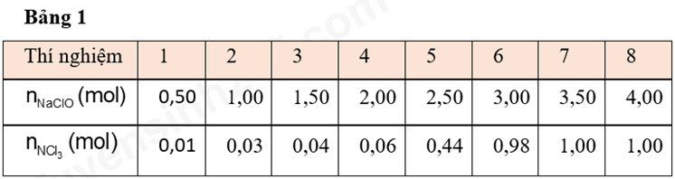 Nếu thử nghiệm thứ 9 được tiến hành trong thí nghiệm 3, việc thêm 1,25 mol NH3 vào dung dịch nước tẩy, lượng NH2Cl sinh ra sẽ gần bằng