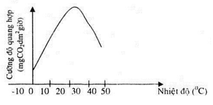 | b) Khi nhiệt độ tăng thì cường độ quang hợp giảm và giảm dần đến 0. | ||